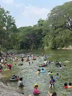💦 Behind the dam, water is released, flowing along the canal to Korat city. During the Songkran Festival, tourists come to play in the water. ##Play in the water to cool off