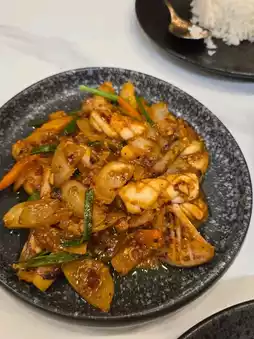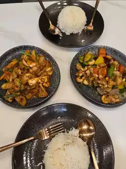 We ordered two dishes: Chicken with Cashew Nuts and Squid with Salted Eggs. They were delicious with hot steamed rice. It was incredibly satisfying, and the food was even more delicious when you're hungry. We're not sure what time the restaurant closes, but we went around 9:00 PM. It was still open, and the place was packed with customers.