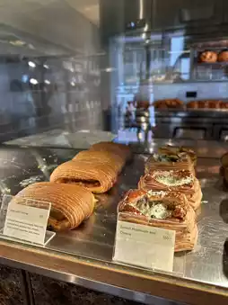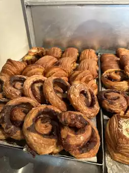 Homemade Danish bakery with a wide variety of crispy baked goods.