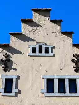 A building caught my eye in its tranquility—a German-style stepped gable, like a wooden house in a small Bavarian town. The fretwork on the window frames, the reddish-brown roof, gently faded with time, now a small coffee shop.