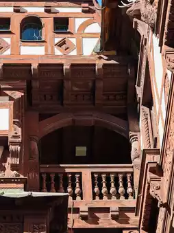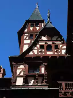 What we saw wasn't the towering castle spire, but rather small wooden windows, stained glass, shadows of balconies, and deer heads. These details didn't reveal themselves, but rather "waited to be seen." The woodwork on the tower was so detailed that we wanted to pause and gaze.