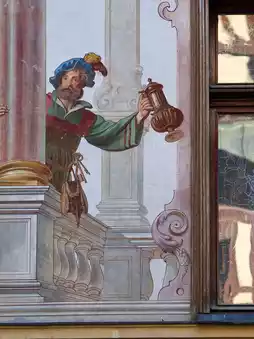 We paused to gaze at the image of a young man in Bohemian clothing on the wall. He wasn't doing anything special, just posing in a "lively" manner, as if laughing with friends at a party or peeking at someone from the corner of the balcony.