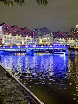 As night falls, Clarke Quay transforms into a lively enclave brimming with energy. The illuminated waterfront, with its colorful reflections on the Singapore River, creates a picturesque setting that’s both romantic and dynamic. Whether you’re out for a fun night with friends or a date, the lively music and cheerful crowd make it a memorable experience.