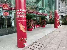 Taking a walk along the raffles place area, you will discover that many of the office buildings have started to decorate their buildings. You can see auspicious red and pink flowers decorations placed all along the raffles place business district. There are also banners of blissing words written in the various areas too. You can also find a "Fu" which means good fortune. You will definitely have the good fortune to succeed in everything that you do in this coming year of the snake. The auspicious kamquat and the mandarin oranges plant was also placed at the entrance of some of the buildings as well, to bring in luck and prosperity.