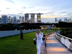 Marina Barrage, or the rooftop lawn park, is another interesting landmark where you can enjoy views of the city. You can see Marina Bay Sands, the Singapore Flyer, and the city skyline. The atmosphere is very nice. Below is a running park where many people come to jog. Upstairs is a great place to relax and chill with friends, family, or your partner. I must say, if you come to Singapore, this is a great spot to unwind and enjoy the view.