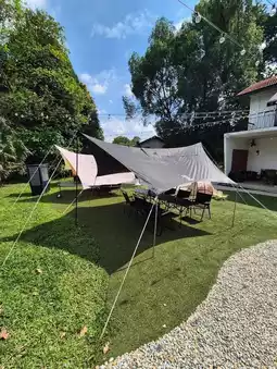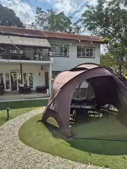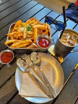 It is a brilliant concept here as you see tents being set up right outside the cafe and you get to relax, chill, dine or have a cup of coffee and some snacks in these tents. Those with fur babies, you can bring your pets to this cafe too, they are a pet friendly cafe and guess what? There's even tents for your pets too, how cute! Order their truffle fries which is crispy and deliciously drizzled with lots of truffle oil. Have a cup of their milky latte too, and that makes a lazy afternoon treat. Food and drinks are served in mass tins and the cafe seats are camping chairs. Drop by this unique cafe for a fun experience!
