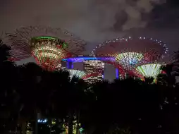 The Supertrees are towering vertical gardens that light up the night in a mesmerizing display.