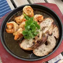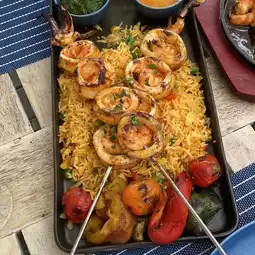 Delicious fresh grilled salmon and the accompanying garnish , cashews and dressing, was absolutely Devine. Herb had fresh Fish with fries and an assortment of perfectly roasted vegetables including whole garlic, pumpkin slices, capsicums and zucchini.