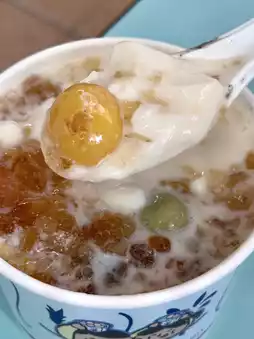 The tangyuan rests on a smooth, creamy base of homemade soy beancurd, which adds a delicate texture that perfectly complements the chewy dumplings. To enhance the experience, we added peach gum, which brought an extra layer of texture and depth to the dish. DDSD also offers a variety of toppings like refreshing grass jelly, crunchy grated peanut, gingko nuts, and rich black sesame sauce, along with a selection of sweeteners, including ginger sugar, gula melaka, and traditional white sugar.