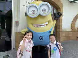 Previously, when we went to Universal Studios Osaka, every ride required waiting in line for one to two hours. Not to mention the kids, even adults couldn’t handle it! This time, our family came to Singapore with one of the main goals being to fully enjoy Universal Studios (because the lines aren’t that long here). Universal Studios Singapore is located in Sentosa. Before entering, it’s customary to check in and take a photo in front of the Universal globe. Once inside, we noticed a sign for kids to measure their height, showing which rides they can or cannot go on—super convenient! Definitely a thumbs up! My little brother loves Sesame Street, and we went on the Sesame Street Space Chase ride at least five times, with the longest wait being only 5 minutes each time. Then we visited the Egypt Pharaoh zone and took an archaeological vehicle to see some animals. At noon, we had lunch at the Jurassic Park restaurant, which even has a T-Rex fossil displayed in the center—very spectacular! Outside the restaurant, we met a dinosaur trainer who brought out a small dinosaur to perform for us, and the dinosaur could even move! (Super realistic!) After that, we enjoyed several different rides and watched a 4D movie, basically with no waiting in line. Finally, we took photos with the Minions, and when we were leaving, the staff gave the kids two inflatable balloons—they were so happy! For those who love Universal Studios, I sincerely recommend you come to Singapore for an unforgettable experience ❤️❤️