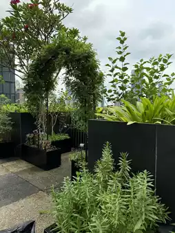 The hotel upholds an eco-friendly philosophy, surrounded by lush greenery. The sky garden grows herbs that supply the hotel 🌿 It's like staying in a forest 🌳