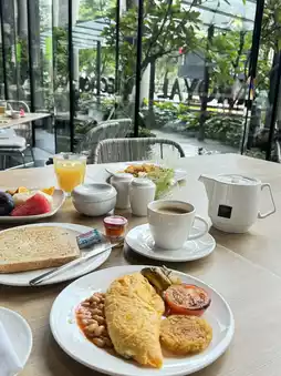 The rooms feature modern design and are quite spacious. To get a room with a green view, you need to request it in advance; otherwise, you'll have a regular city view. I forgot to mention that 😹