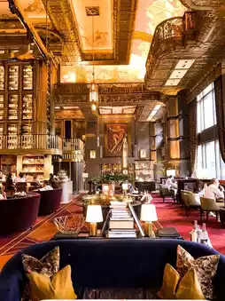 The moment you step in, the luxurious atmosphere hits you. The classical exterior and the red velvet sofas beneath the liquor tower, paired with soft vintage music, instantly transport you to a European aristocratic ball from the last century. The Art Nouveau French style decor and Baroque ceiling murals create a dazzling, opulent vibe. Here, you can enjoy a lavish afternoon tea with your besties or savor various cocktails and dinner, but remember to book in advance~