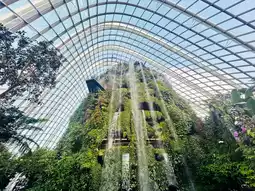 The Cloud Forest is located in Singapore's Gardens by the Bay and is a must-visit indoor attraction in Singapore, showcasing a spectacular mountain ecosystem. Inside this 35-meter-tall structure is a magnificent waterfall, with water cascading down dense mountain slopes, creating a cool and humid environment that makes you feel as if you are in a tropical highland. The building has many different levels, each offering a unique view of the waterfall and surrounding greenery. The Cloud Walk and Canopy Walk are elevated pathways that allow visitors to get up close to the plants and enjoy the stunning views of the garden.