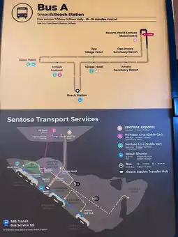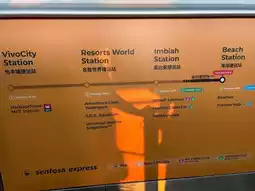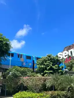 Once you cross the boardwalk, you'll see the Sentosa logo and the colorful monorail trains passing by. Next, head to the entrance of Universal Studios Singapore, where you can find a food court for a quick bite. From there, take the escalator down to the underground parking lot to catch a free shuttle bus to Siloso Beach.