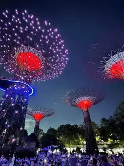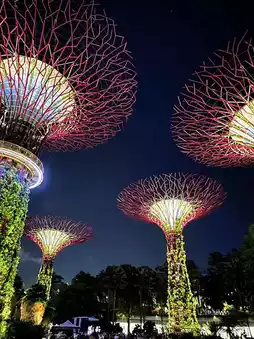 #PhotoSpot The giant SuperTree Grove in Singapore 🎉🌳 Garden by the Bay, an impressive landmark that photo lovers and content creators must not miss! The light show is on every day, twice at 7:45 PM & 8:45 PM. Free to watch. Most tourists come to lie down and watch.