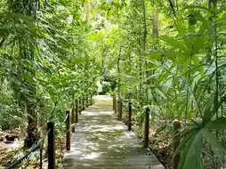 Rainforest Walk is located in Singapore's Gardens by the Bay, a site that blends nature with modern design. This elevated trail allows visitors to stroll among the treetops and enjoy the beautiful scenery of a tropical rainforest. Along the way, you can not only see a variety of plants but also many rare flowers and trees. The trail's clever design, combined with the surrounding glass greenhouses and lush environment, makes you feel as if you are in the heart of a tropical rainforest.