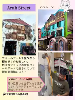 A street where murals decorate the walls of shops and restaurants called “Arab Street.”