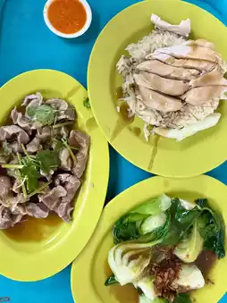 Then comes the famous dish, Singapore Hainanese chicken rice, located near Maxwell Station. This is definitely a highlight. The chicken is tender and bouncy, and the chicken innards are the best—no unpleasant smell at all. Anyone who comes must try it!