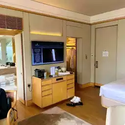 Situated in the heart of Marina Bay, just a 5-minute walk to Merlion Park and Marina Bay Sands. The room’s floor-to-ceiling windows offer direct views of the F1 racetrack and the Ferris wheel at night. The location’s feng shui is praised by Lonely Planet as "flawless."