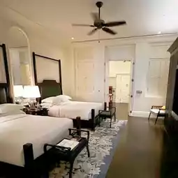 On this trip to Singapore, I made up for the regret of not staying at the Raffles Hotel last time. Raffles truly lives up to being a landmark building in Singapore. The architectural style is so distinctive, with an elegant and grand white exterior full of colonial charm. Walking into the lobby, you can immediately feel that luxurious atmosphere—it's absolutely amazing! The rooms are new and very clean. Upon check-in, we were given fruit and a Singapore Sling cocktail, along with a handwritten welcome card📑. The butler service is 24 hours and very enthusiastic. When I mentioned wanting to go to the Long Bar in the evening, he helped us make a reservation. The food is really delicious too. We had breakfast right next to the blue fountain⛲️, and luckily it was quiet in the morning. After eating, we took beautiful photos and checked in. I highly recommend the fried noodles for breakfast—they are very tasty! The service, from the doorman to the room service, is very thoughtful and attentive. Communication was done in both Chinese and English, so even those not good at English don’t need to worry; you can communicate in Chinese as well. The location and views are great, and transportation is convenient. #SingaporeHotels