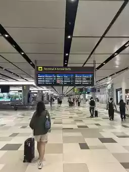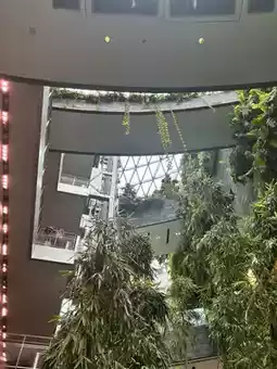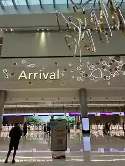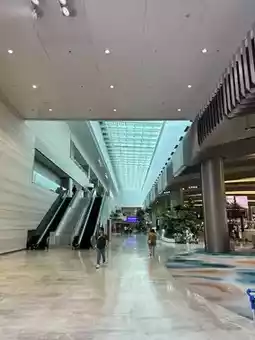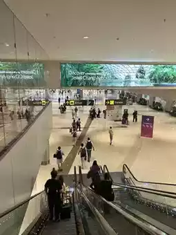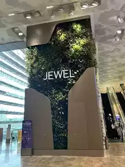 Jewel Changi Airport has an atmosphere like an oasis in the middle of the airport, filled with lush green trees in the serene and cool Shiseido Forest Valley before reaching the Rain Vortex waterfall, the highlight in the center of the building. The overall atmosphere is relaxing, modern, and beautiful for photos from every angle.