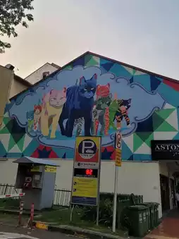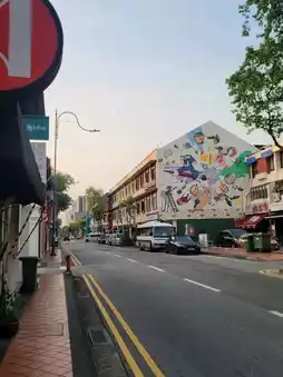 At Joo Chiat Road, Singapore, Nyonya and Peranakan Heritage comes alive! This area contains rows and rows of colorful shophouses, with their vibrant pastel colours which is a staple of Singapore tourists' and locals alike's instagrams. The murals painted on the walls give flair to the scenery as the morning sunlight shine upon them.