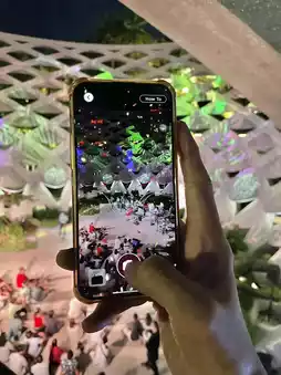 Arriving around 6:30 PM allowed me to witness the transformation of the landscape from day to night. As dusk settled, the ImagiNite light show commenced, illuminating the path with vibrant projections and augmented reality (AR) features accessible via the ImagiNite app. This nightly spectacle runs from 7:50 PM to 9:40 PM.