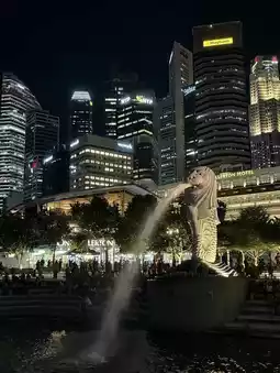 We started with the must-visit landmark, âMerlion Park.â The famous Merlion spouting water was super popular. We stood there trying to catch the water in our mouths just like the trend. The photos turned out funnyâour faces looked like we were really thirsty, haha. The surrounding view was stunning, with Marina Bay Sands right in front of us looking grand.