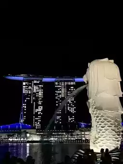 Day 2: Landmark adventure! Started at Merlion Park, took photos with the iconic Merlion spouting water as expected, then walked to Marina Bay Sands.
