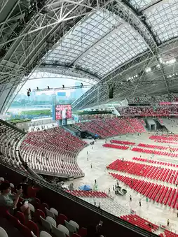 As part of my Day 2 spring itinerary in Singapore, I attended an event at the magnificent National Stadium—an unforgettable experience that blended entertainment, comfort, and culture. The stadium’s sleek, modern design and 50,000-seat capacity offered a grand setting, complete with air-conditioning, excellent acoustics, and spacious seating.