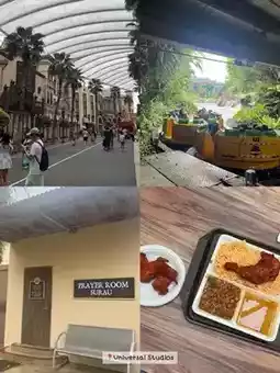We searched for a halal restaurant and finally found one in the food court in front of the Mummy ride. It was Indian food, tasty but very pricey. Actually, every place was pricey 5555.