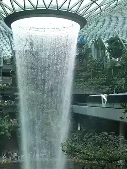 We start at Changi Airport. This is no ordinary airport; stepping inside feels like entering a paradise garden! I have to say, the grandeur of “Jewel Changi” is truly the best in the world, featuring a 40-meter-high waterfall called the “Rain Vortex” flowing beautifully, surrounded by large trees and lush gardens that make you almost not want to leave the airport.