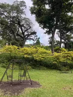 The atmosphere felt like stepping into a fairy tale garden with lush green trees,
