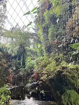 •Cloud Forest: A misty dome with a grand waterfall. Walking inside feels like being in a fantasy world ☁️💦