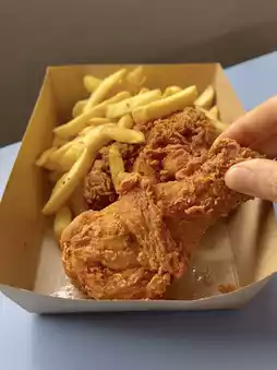 They fry everything to order, so you get that crunch with every bite. No frills, just really solid fried chicken. You can get it with rice or on its own, but honestly, it holds up perfectly on its own.