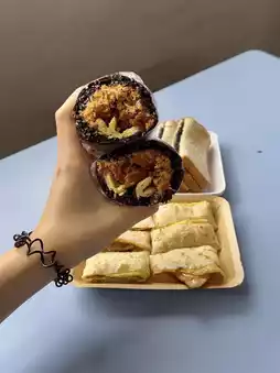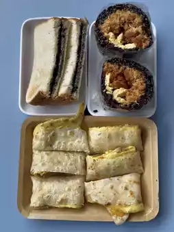 This tiny stall serves Taiwanese breakfast that’s simple, hearty, and really comforting. We tried the Taiwanese egg pancake — soft and slightly chewy with crispy edges, filled with cheese and ham. It's the kind of thing that feels light but still leaves you satisfied.