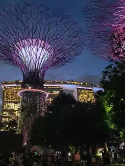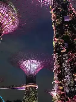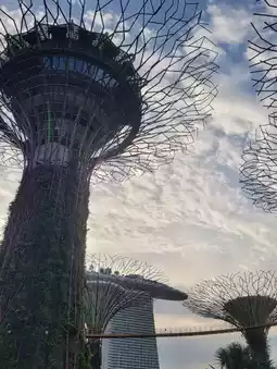 Supertree Grove at Gardens by the Bay is a beautiful spot that changes with the time of day. In the daytime, the Supertrees stand tall like giant flowers, their colors bright against the blue sky. We loved seeing the unique shapes and how the trees bring nature and art together. As the sun sets, the grove becomes even more magical. The Supertrees light up in colorful displays during the Garden Rhapsody show and the music makes it feel like a fairytale. Walking around at night, the lights sparkle and dance and everything feels calm and dreamy. Supertree Grove is truly amazing to see, both in the day and at night!