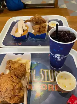 Prices are a bit higher than outside but the quality is good. They have burgers 🍔, fried chicken 🍗, and desserts like churros or various ice cream flavors 🍦 Seating is available in almost every zone