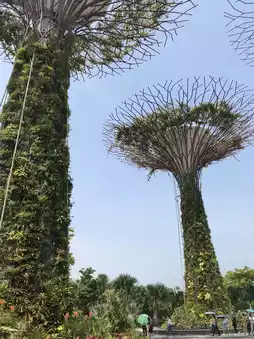 This huge, dreamy artificial forest is a waterfront attraction in Singapore built with a government investment of over 100 million. The Supertrees are located right behind Marina Bay Sands Hotel, with each tree averaging over 23 meters in height. The "Supertree king" stands at an impressive 50 meters tall, about 16 stories high—truly spectacular! These massive Supertrees are not only a landmark of Singapore tourism but also environmentally friendly, capable of collecting rainwater and generating solar energy 👍
