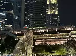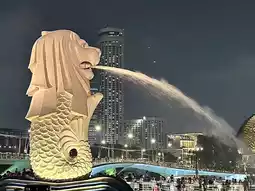 A landmark you can’t miss! 🦁 The surrounding view is beautiful, with Marina Bay Sands’ three-legged building looking like a spaceship in the distance 🌆