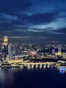 Marina Bay Sands is an integrated resort facility facing Marina Bay in Singapore. It combines a luxury hotel, casino, shopping mall, restaurants, and a convention center. The hotel, characterized by its three towers, is connected at the rooftop by the "Sands SkyPark," which features an observation deck and an infinity pool with panoramic views of Singapore!