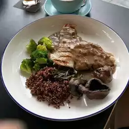 I ordered that open salmon breakfast and my friend ordered the chicken cheese grilled sandwich and it was so huge. We also ordered an Americano and a breakfast burrito and I really took my time eating the breakfast burrito.