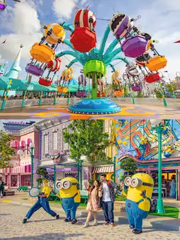 There are 3 rides in total. Starting with the first ride, Buggie Boogie, a super cute Minion carousel dancing to hit songs mixed by the Minions. Around it, there are cute photo spots📸.