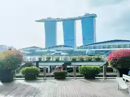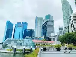 🏙️ Behind is Marina Bay Sands and a zone of beautiful futuristic blue office buildings