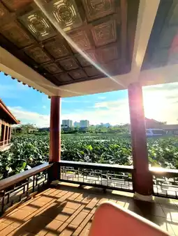 Inspired by the Summer Palace, "the gallery of tea fragrance" sits above the lotus pond and is a captivating sight inside Chinese Garden. The three pavilions interconnected to each other, exudes elegance, grace and greatness with its patterns inscribed at its walls and ceiling and the tall columns supporting the structure, reminiscent of ancient China. Just sitting on this structure, admiring the scenery is really relaxing and refreshing in mind and sight.