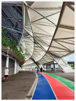 - It features an outdoor running track with a sunshade roof and a high-quality rubber surface