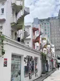 The second neighborhood is Bugis Street, which is somewhat similar to Chatuchak in Thailand. There are plenty of souvenir shops, fashion items, and food. In this area, there is a popular photo spot—the colorful stairs located behind the Bugis market.