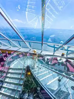 5️⃣ Hidden Gem Alert – Go past the casino to the Carousel Lounge and find a full-height glass wall at the ship’s stern. You’ll get dramatic silhouette shots with the ship’s water trail behind you!
