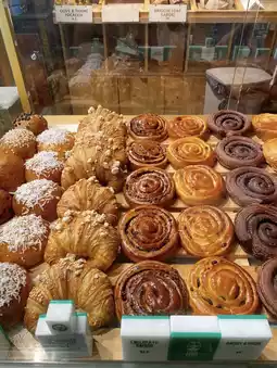 A bakery that sells both savory and sweet items. The highlight of this shop is the wide variety of baked goods to choose from, including croissants, Danish pastries, baguettes, bagels, tiramisu, cakes, and more. Besides desserts, the shop also sells tea, coffee, and freshly squeezed fruit juices. 🫶🏻Review